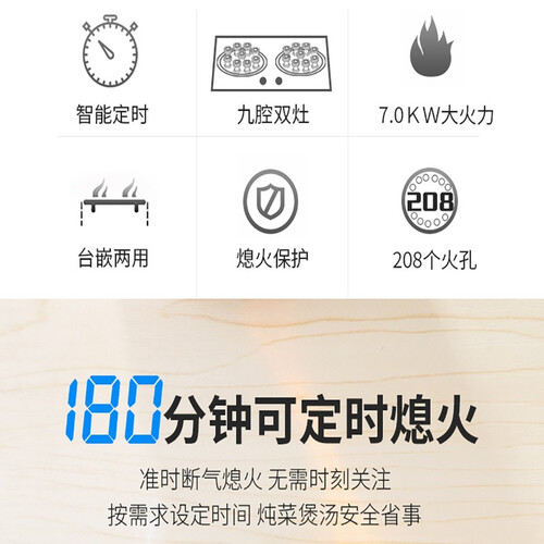 加厚铁铸炉架,防摔抗挤压,使用寿命更长久。双灶可独立定时,也可同时定时,让烹饪更得心应手,小白也能制作色香味俱全的美味。