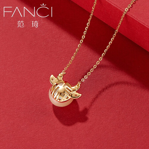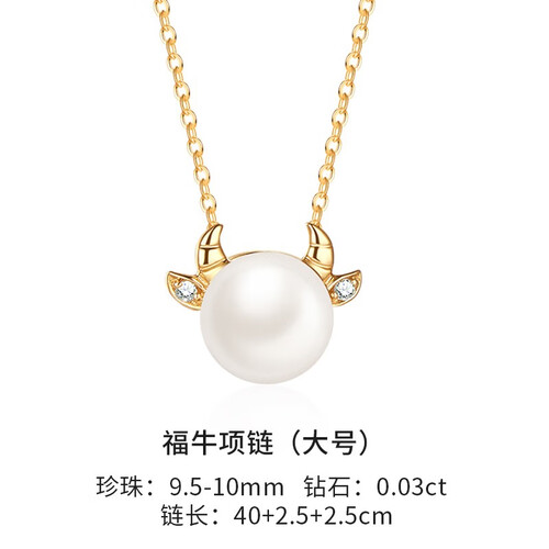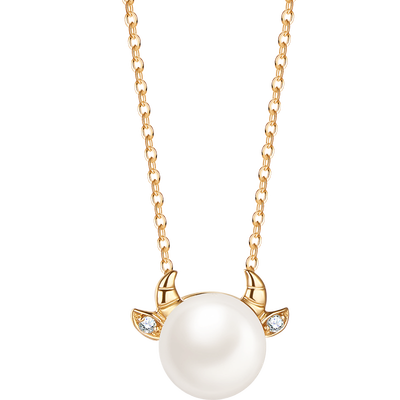 项链采用萌牛的造型设计,俏皮可爱的同时,佩戴后可瞬间提升独特的少女感。中间还点缀着一颗珍珠,圆润饱满更加自然。