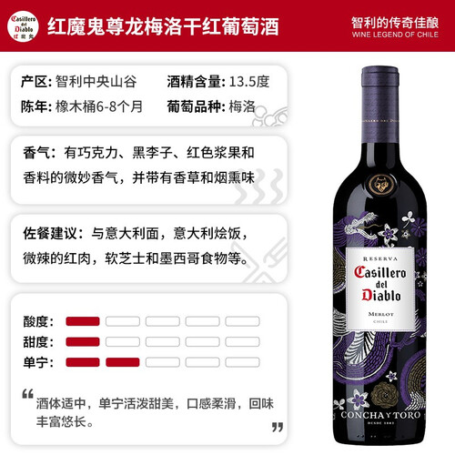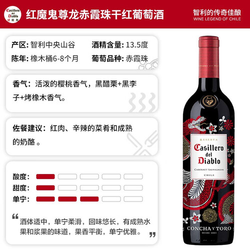 通过橡木桶陈酿,带来更稳定酒色。口感柔和,香味协调,带有香草可可咖啡香气。深宝石红色,果香平衡,单宁精选,余韵十足。