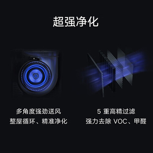 搭载5重高精过滤系统,能够有效除味去甲醛,还有抗菌抗病毒作用。米家APP智能控制功能,语音便可操控,简单方便。