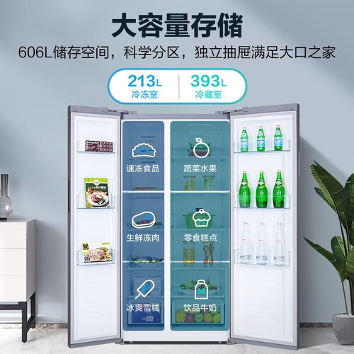 采用双变频科技,避免冰箱内的温度波动过大,延长了食材的储鲜时间。采用风冷无霜系统,避免食物结霜粘连。