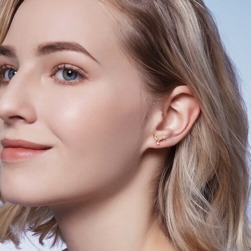 小巧的麋鹿造型,点缀耳边,散发出年轻阳光活力的气息。22k金钻材质,稳固坚硬,富有质感和光泽,佩戴在耳边小巧精致又夺目。