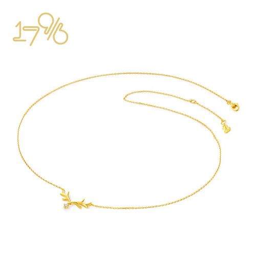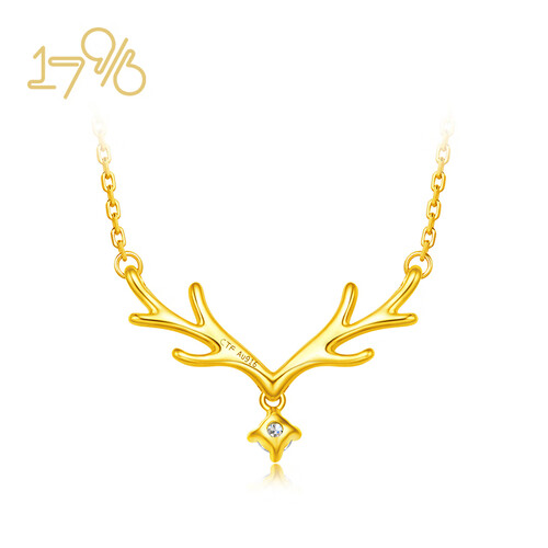 黄色基调的K金项链,明媚富有光泽,让您秀出轻奢亮眼的大气风格,镶钻设计的鹿角吊坠,精致灵动,具有一路有你的浪漫寓意。
