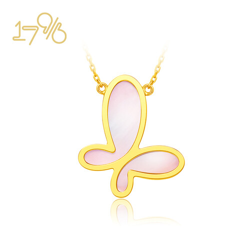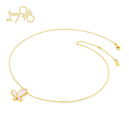 蝴蝶吊坠设计,粉贝碌珠边,造型精致灵动,清新浪漫感十足,轻松衬显出甜美少女气质,22K金打造链条,温润亲肤。