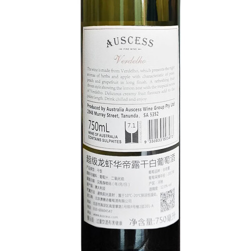 澳赛诗澳洲原瓶进口干白葡萄酒
