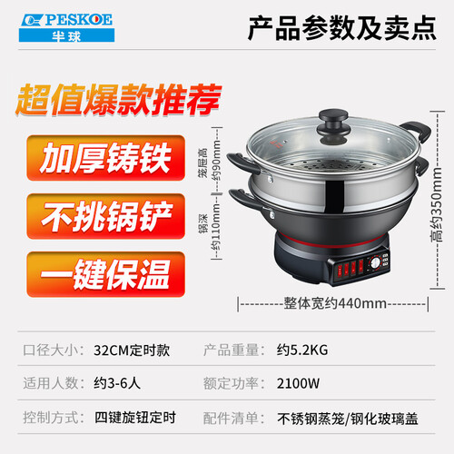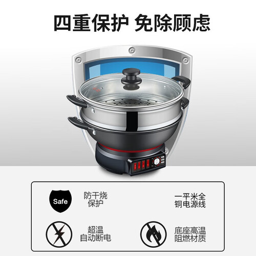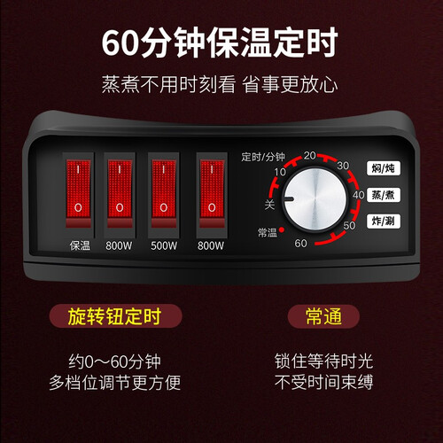 具有一键保温功能,给粥汤食物提供保温,让美味不必久等。配备加厚不锈钢蒸笼,提升了坚固程度,不容易变形。