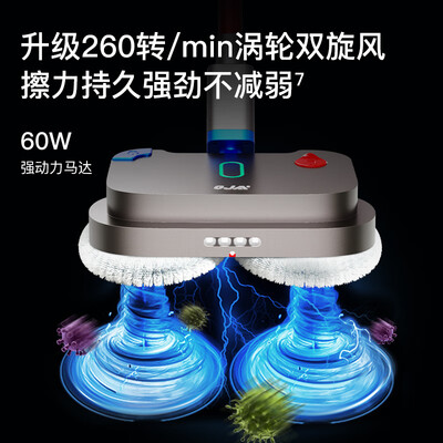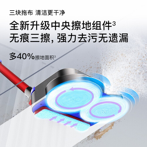 新升级3块增压拖布,紧贴地面,即拖即净,日常清扫无压力。内置大动力电机,提升旋速效率,易于溶解重度污渍。