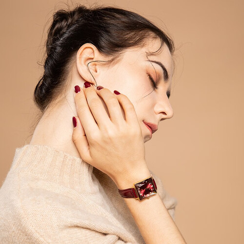 表镜采用立体切割工艺,运用光学原理,让表镜闪现不规则的自然光泽感。表镜外圈的同色系镀色设计展现精致细节,高级气息满满。