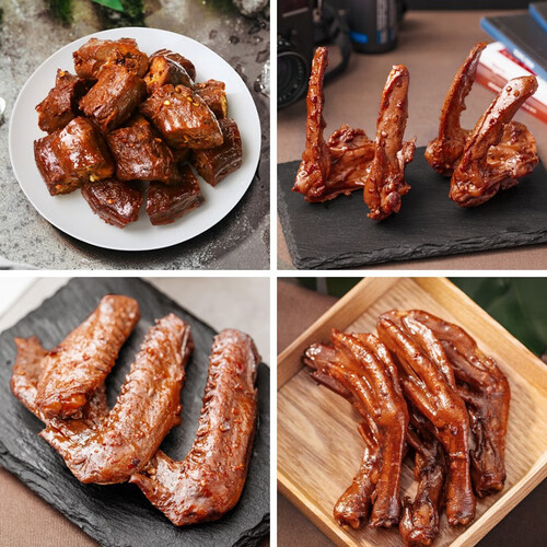 内含鸭脖,卤香四溢,肉多厚实,鲜韧美味,越啃越劲道,余味悠久。可作为夜宵,轻食饱腹,补充身体能量。