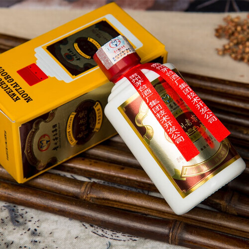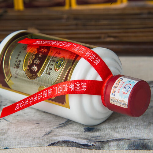 这款茅台酒酒瓶设计是采用经典茅型瓶,上面还系有特制的红飘带,品牌凸显包装大气,过节用来送礼很有档次。