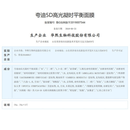 夸迪 5D玻尿酸滋养面膜