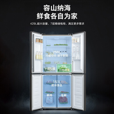 429L大容量,结合7层精储格局,满足更多需求。AIF草本抗菌,营造洁净清新的储鲜环境,让您使用的安心放下。