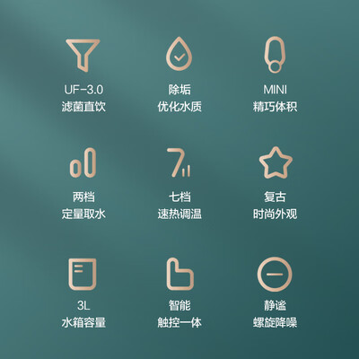 四级复合精滤,有效滤除水中重金属和水垢,饮用更加放心。3L一体式水箱,大水量保障出水速度,随时可以饮用。
