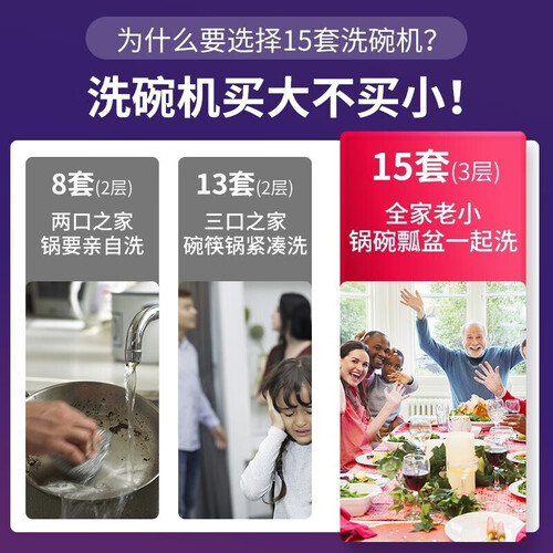 采用智能开门烘干系统,保证餐具干爽,不残留水渍。使用双微蒸汽洗系统,持续用高温清洗,不残留油渍。