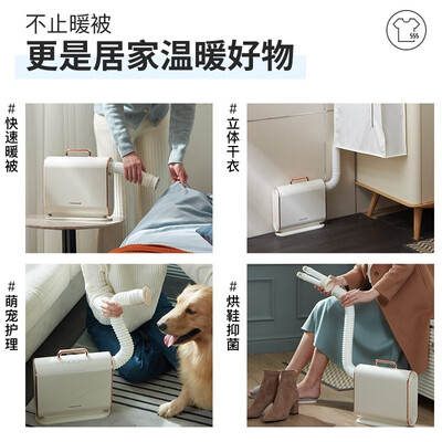 50cm长的加热软管,可以深入被窝,让温暖全覆盖。还能通过循环热风干衣,穿衣不再受天气限制。