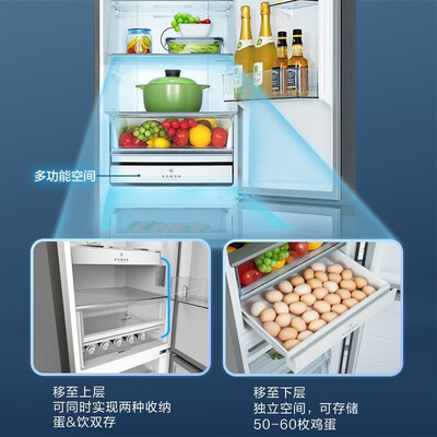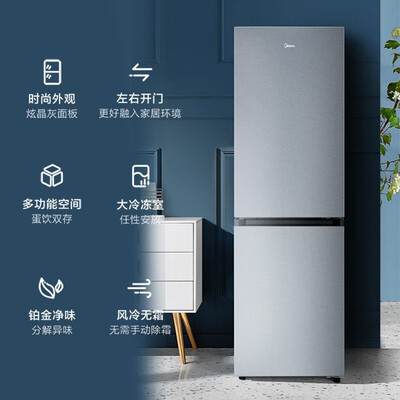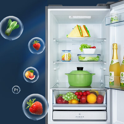 炫晶灰面板看起来沉稳大气,金属拉丝钢板大门,看起来更具质感。采用铂金净味装置分解异味分子,保持冰箱清新空气。