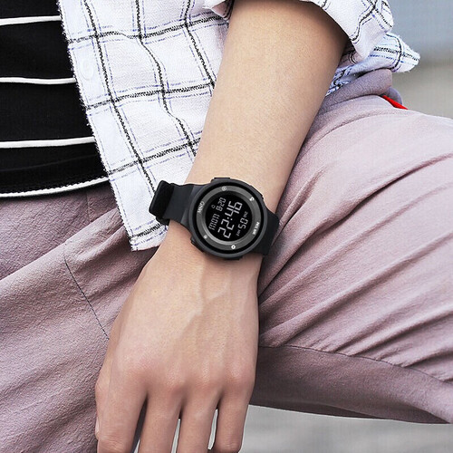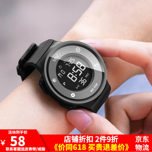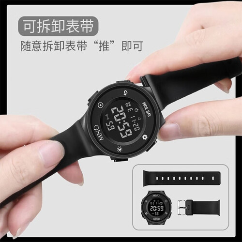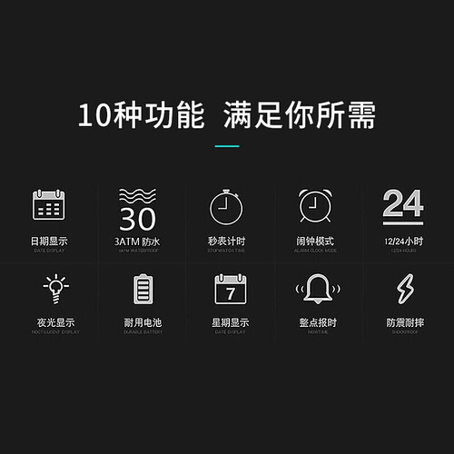 树脂橡胶的表带,质感轻盈,能很好的贴服在手腕上。蓝绿冷光的显示设计,实用之余更添时尚感。