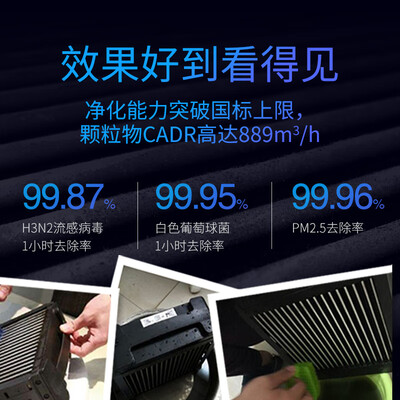 兼具双离心风道和双涡轮驱动,动力十足,时刻保持强劲风量,净味除醛效果更显著。结合离子净化系统,清新除醛更稳定持久。