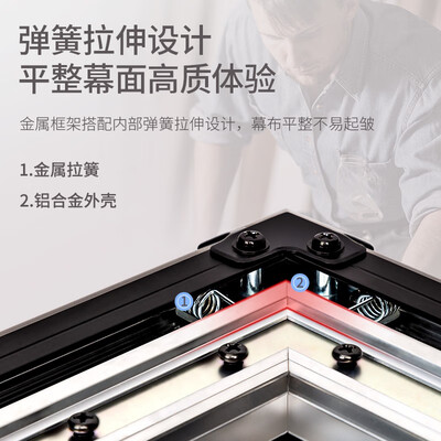 幕布选用PVC高分子材料制成,在抗光工艺的加持下,强光场景依旧能清晰显示。金属材质的弹簧,久用不易损坏。