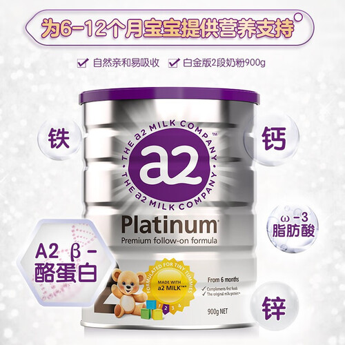 含有珍贵的A2型蛋白质,天然温和,更能有效保护宝宝娇嫩的肠胃,呵护宝宝健康成长。自带密封铝箔,保证奶粉干净卫生。