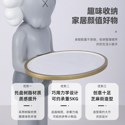 立体暴力熊手中搭配金属托盘,可以摆放酒杯、钥匙等物件,美观又实用。采用优质树脂材质制作而成,环保不易褪色,减少灰尘附着。