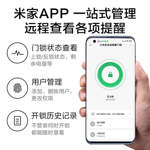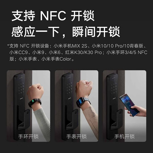 全自动智能门锁设计,改变传统手动开门方式,无需用力自动开关。支持NFC,密码,指纹等多种开锁方式。