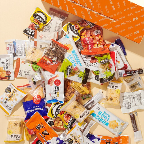 将肉肉、蔬果等42种新鲜零食组合包装,荤素搭配种类丰富,肉质舒爽香脆。同时一百袋小包装汇聚一起,送礼倍显面子。