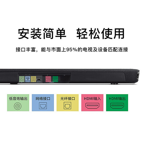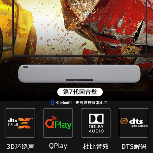 内置多个喇叭单元,增强了声束的放射特性,能够实现环绕声效。低音炮采用无线连接方式,无需线缆,摆放更方便。