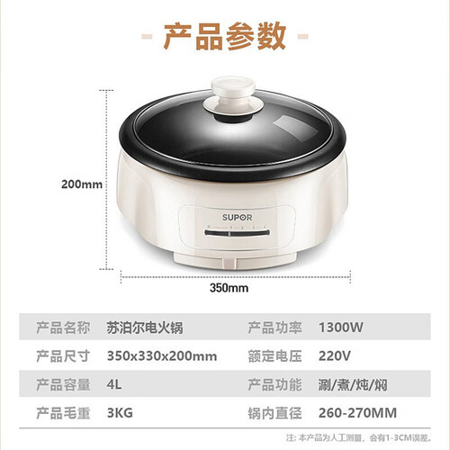 采用4升大容量设计,能够放入更多食物,家庭聚会畅快享受美食。具有防滑硅胶底座,放在桌面更加稳固,不怕晃动产生。