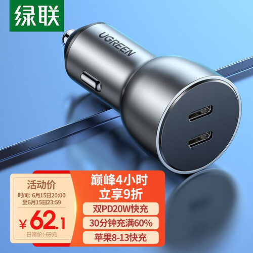 绿联 PD快充技术车载充电器