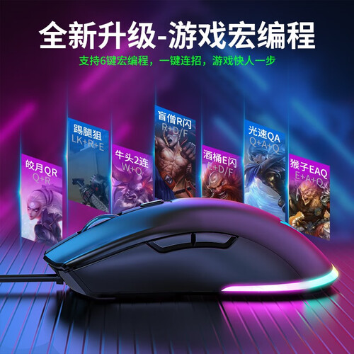 选用轻量化设计,方便快速移动,轻松掌控全场。搭配RGB跑马灯效,6色灯光随意转换,酷炫操作,令玩家爱不释手。