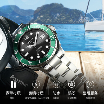 表盘带有超强的夜光处理,在黑暗状态下能够准确读取时间。经典的绿水鬼配色,气质感十足,很适合运动休闲风格的穿搭。