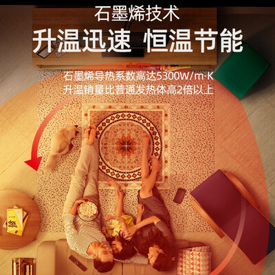 搭载石墨烯技术,提升加热速度,开启后没有凉意的烦恼。内置上下双涡轮风扇,稳定出风,随时找到合适的取暖温度。