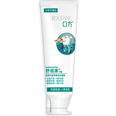 含有小苏打、白蔹提取物等成分,强健养护牙龈,防止牙齿松动,稳固防蛀。深入洁净牙渍,减少牙菌斑,恢复牙齿光滑。