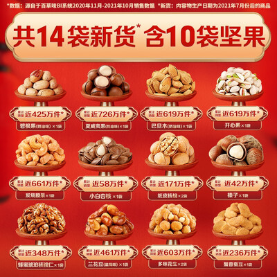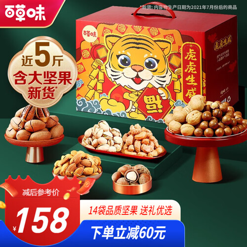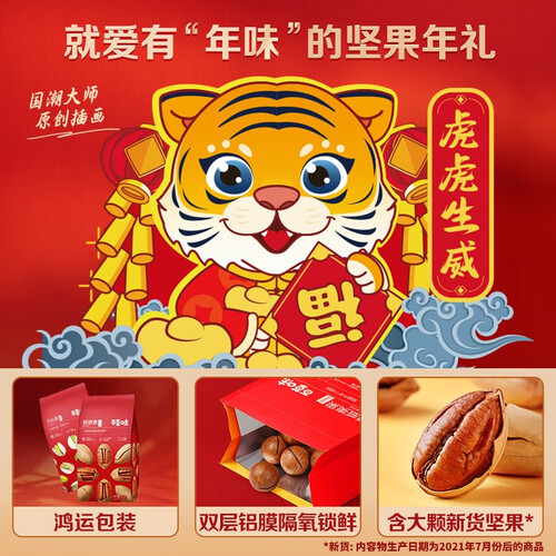 这款虎虎生威零食礼包,能捕捉到中国年里的喜庆氛围。超过5斤的大坚果新货,14种坚果零食,满足全家人的口味需求。
