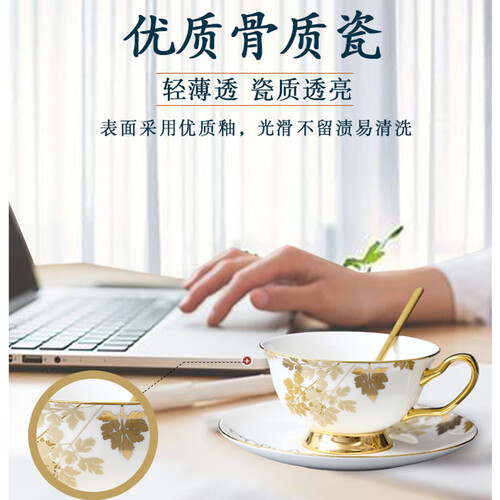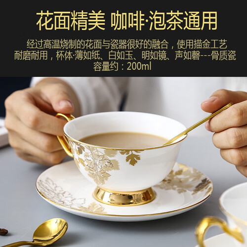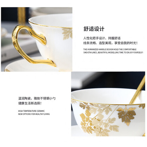 选用优质的骨瓷材质,质地通透,触感细腻。采用匠心鎏金工艺,提升咖啡杯使用的格调,彰显出华贵气质。