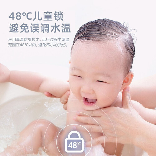 动力强劲的直流变频电机,轻松应对恶劣天气,四季用水不浪费。贴心的48℃儿童锁设计,不用担心洗澡烫伤,老人小孩安心用。