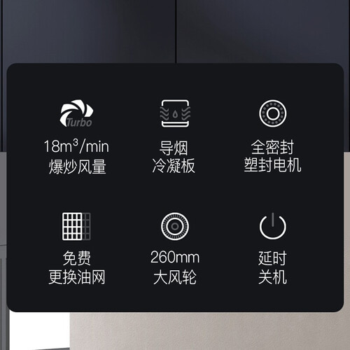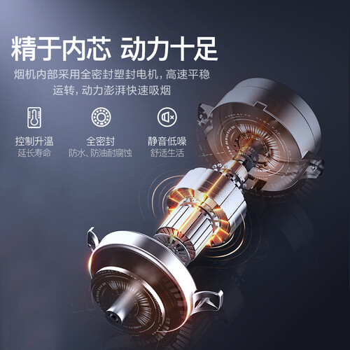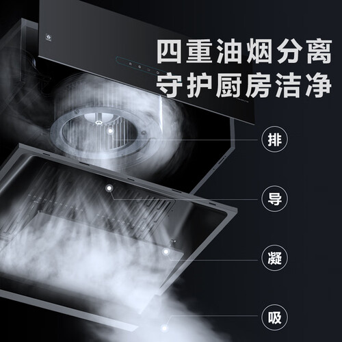 采用四重油烟分离技术,守护洁净清新的厨房。选用全密封塑胶电机,给你带来澎湃的动力。260mm的大风轮,霸气排出油烟。