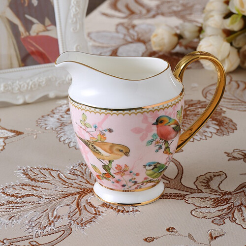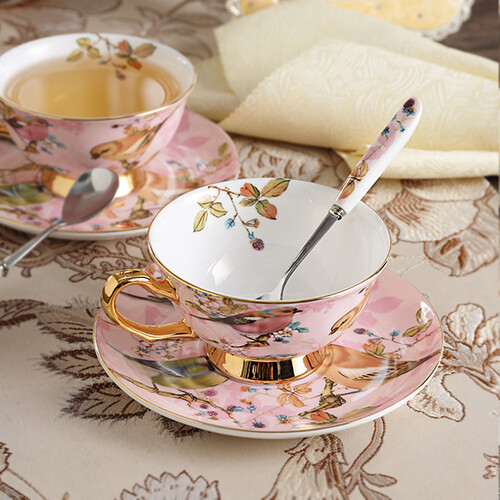 这款咖啡杯加入了花鸟元素,平添温馨而灵动的气息,图案很是精致。加宽手柄的勺子。可均匀搅拌咖啡液体。