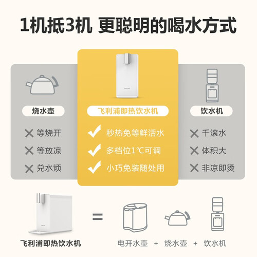 专利即热加热,每一滴都是新鲜热水,无千滚水、隔夜水,放心健康喝。1℃个性化调温,想要的水温都拥有,全能适配各种冲饮。
