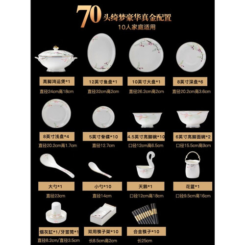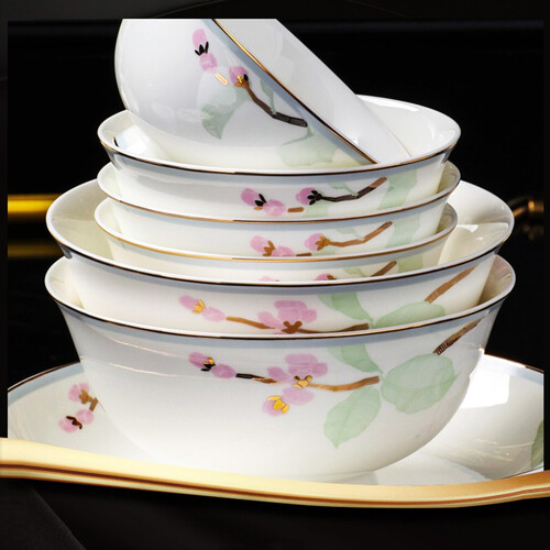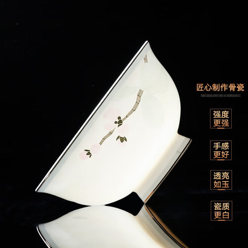 优质骨瓷为原料,瓷质细腻饱满,通透如玉,令人爱不释手。华丽大气的器型,用餐具有愉悦感。