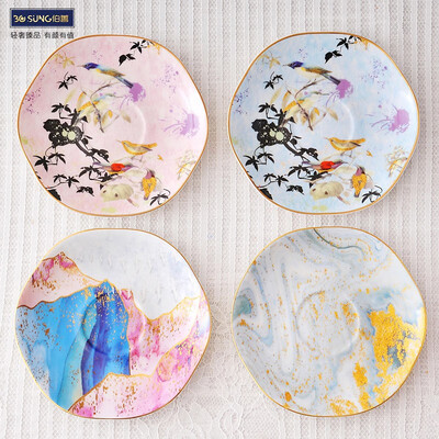 纯手工满把手描金设计,看上去很有欧式复古风格。杯子和碟子的花面含金也是特意做的金沙效果,摸起来非常有质感。