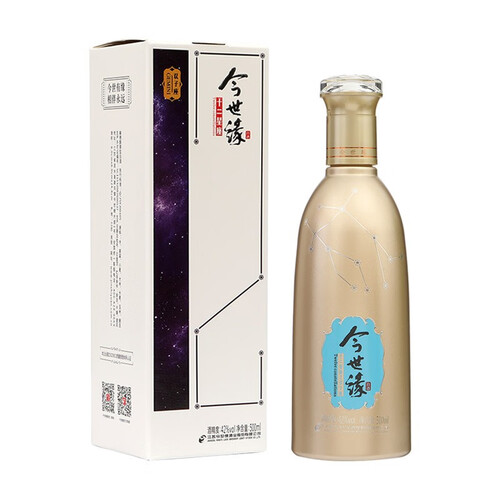 以十二星座为设计理念,每个瓶身背部都印有星座图案,十分时尚;多粮固态发酵,精心勾调,口感绵甜。
