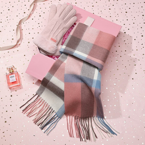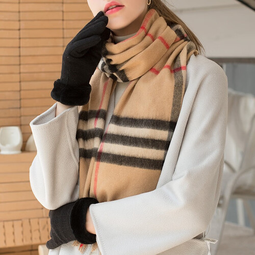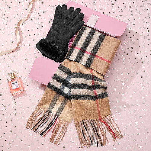 围巾面料选用澳洲羔羊毛,细密严整,厚实锁温,达到抵挡寒风的需求。手套采用仿羊绒加绒,带来双重温暖。