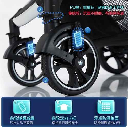 精选PU轮设计,顺滑无阻,经久耐用。整体可折叠,能轻松收纳,放进后备箱携带更方便。五点式安全带,一键解锁,出行安全。