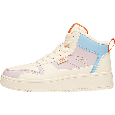 饱和度底的浅紫色、浅蓝色与橙色的搭配,在白色的鞋面上,更显清新质感。载有创新纹理的大底,提供充沛抓地力。