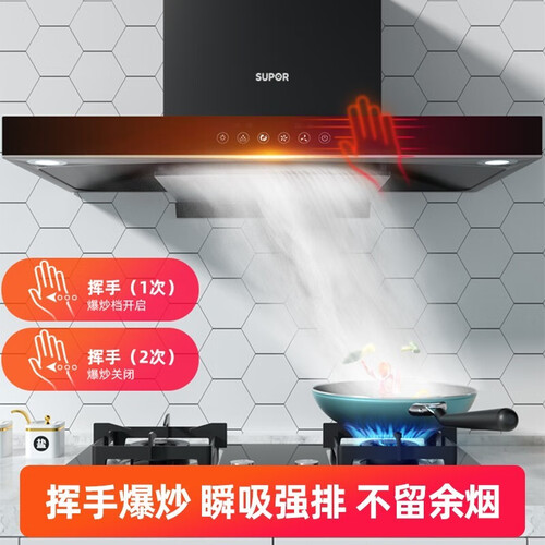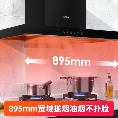 拥有20m³/min大风量,吸烟不跑烟轻松应对煎炒烹炸。895mm广域宽屏,环绕吸烟不残留。410pa大风压,拒绝倒灌。