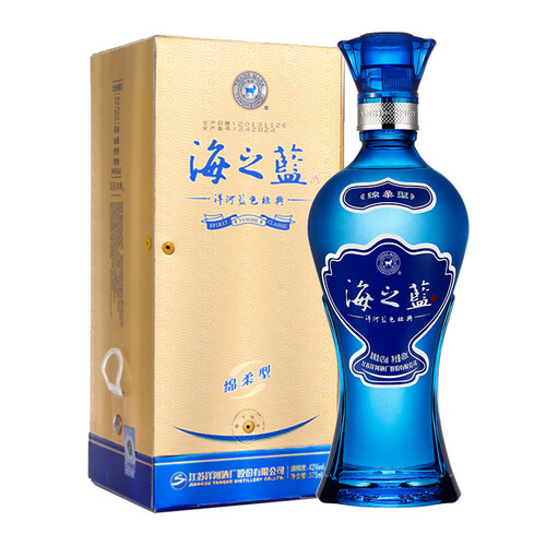 洋河蓝色经典的海之蓝系列白酒,酒香幽雅怡人,入口柔而不寡、浓而不烈,柔和好喝,绵柔顺喉。