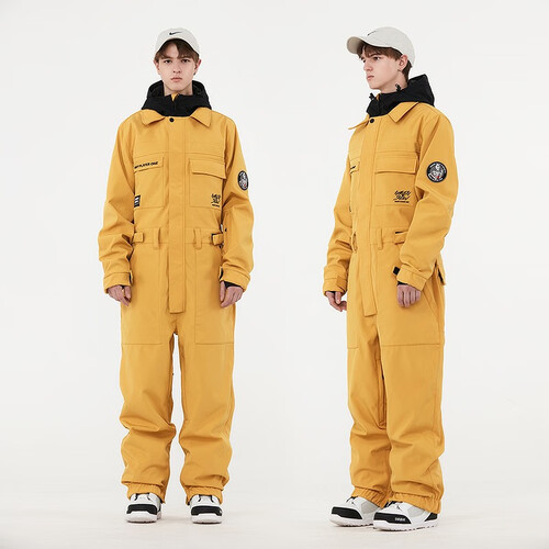 采用连体修身的设计,穿上后不会显得过于臃肿,且行动更方便自如。采用优质防水面料,进行滑雪运动时不用担心雪水会渗透。