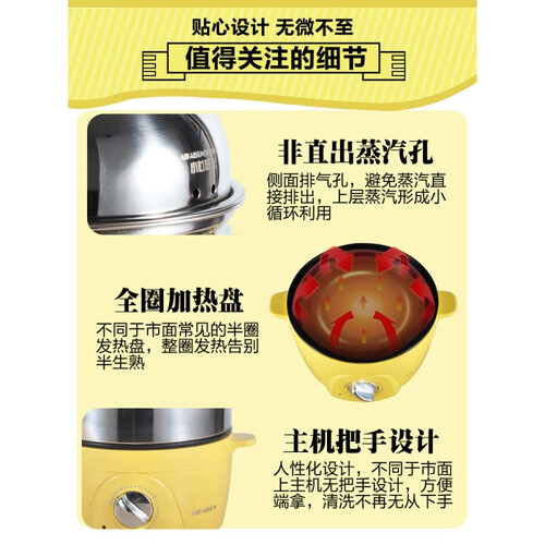 一次可容纳多种美食的不锈钢煮蛋器,高温蒸煮不易产生异味,守护家人饮食健康。30分钟定时系统,解放双手,烹饪更舒适。